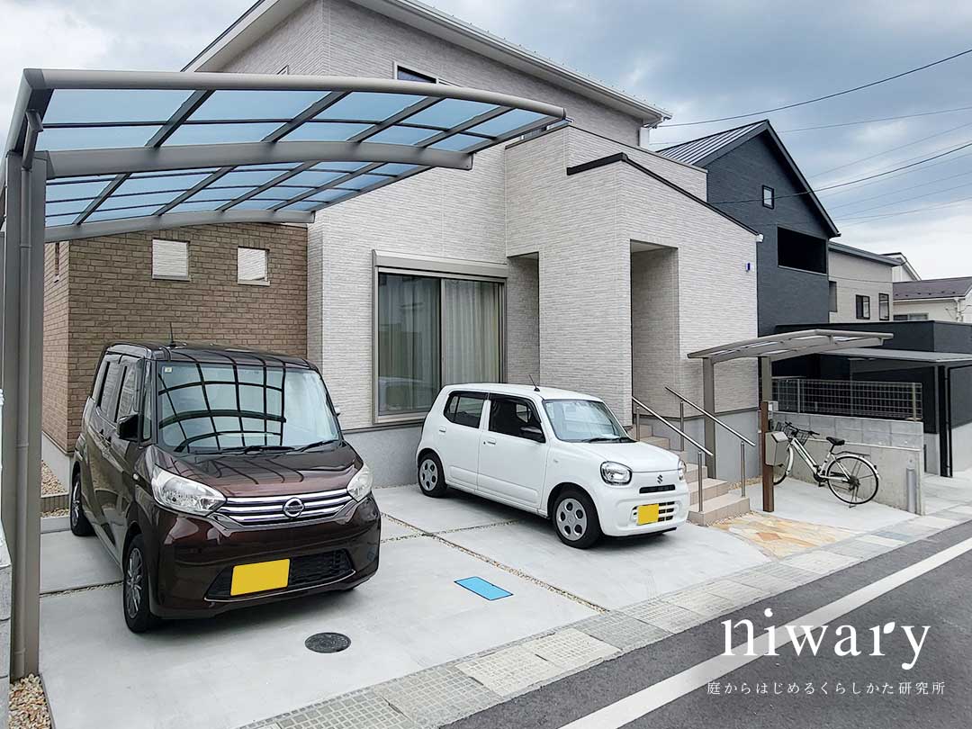 毎日使う駐車スペースは、2台分をゆったり確保。