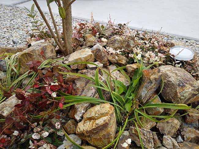 足元に少量置くだけでも重厚感が出て、庭木をより際立たせるアクセントになります。