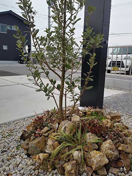 フェンスの設置と一緒に、植栽の足元の栗石も据置させていただきました。
