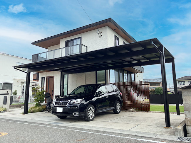 屋根材は“ブラックポリカーボネート(ブラックポリカ)”を採用し、機能性とデザイン性をさらに高めています。