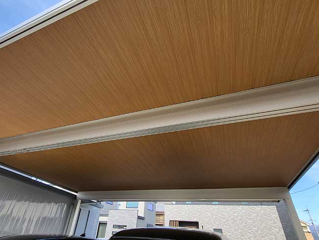 また、今回のカーポートには木目調の軒天パネルを取り付けています。