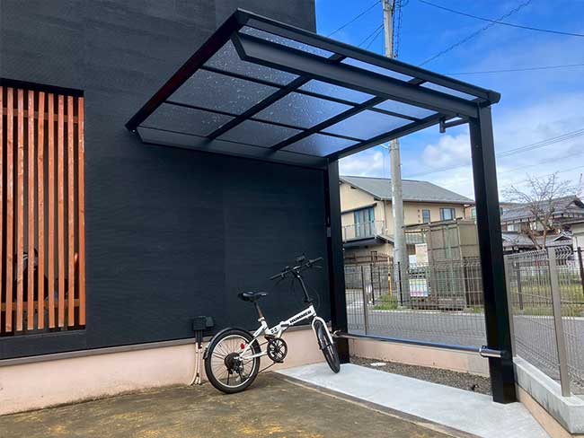 近江八幡市内にて、お庭の一角にあったスペースを活用し、サイクルポートを設置しました。