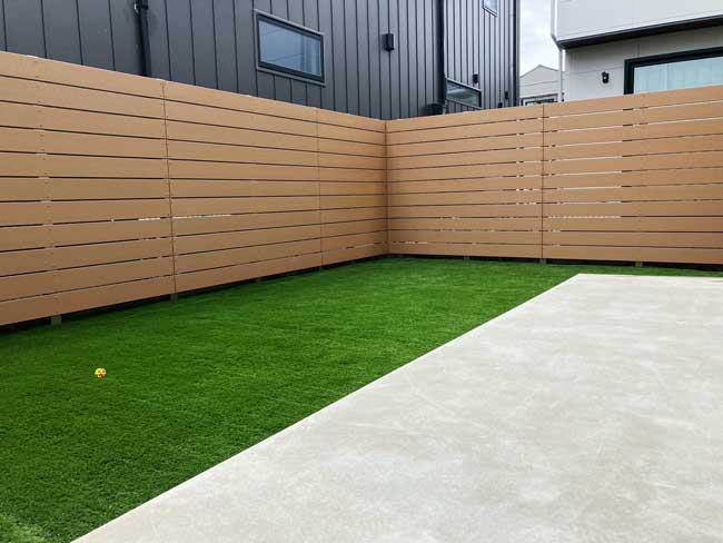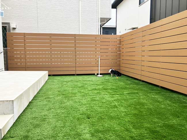 ワンちゃんも思いきり走り回れる、安心で快適なプライベートガーデンが完成しました。