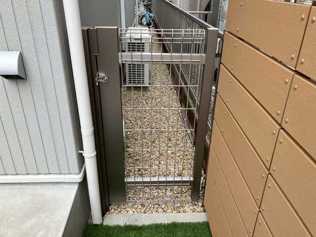 写真4枚目の通路側にはメッシュタイプの門扉を新設。