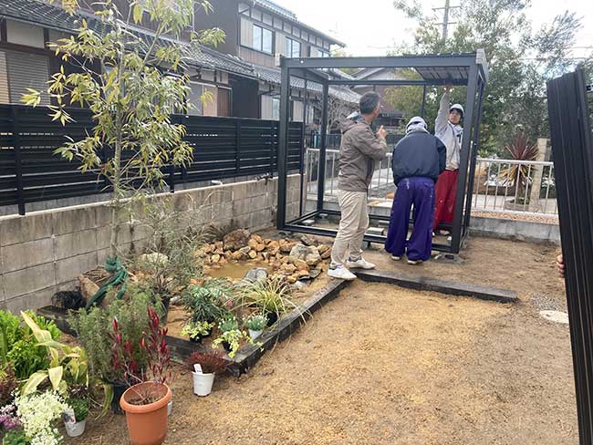 今回は物置も設置したので、頑張って組み立ててくださっています。