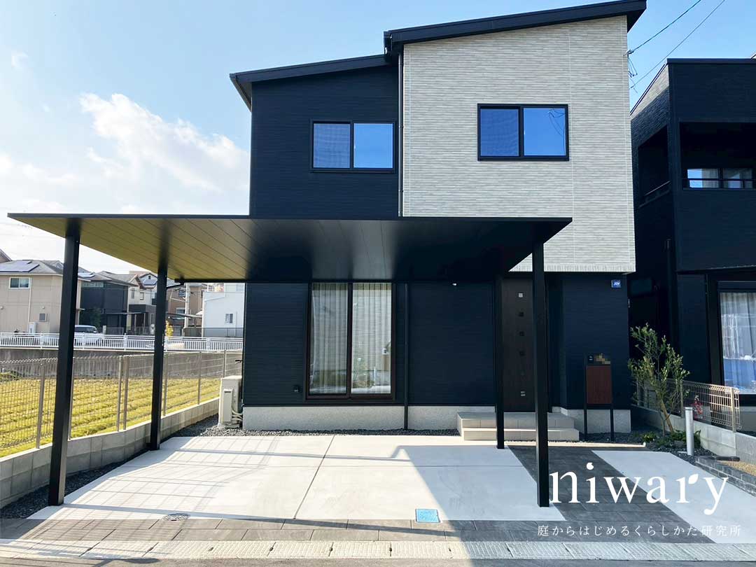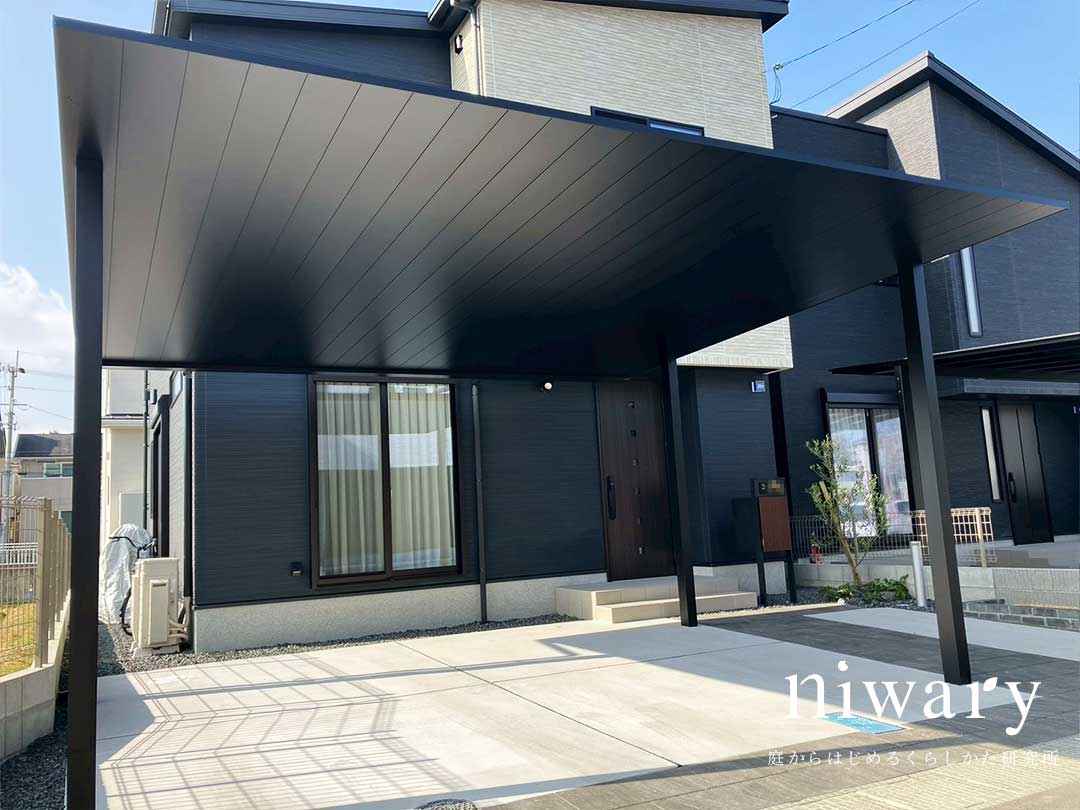 建物の黒と相性の良いカラーでまとめることで、カーポートが「後付け感」のない一体感ある仕上がりになりました。