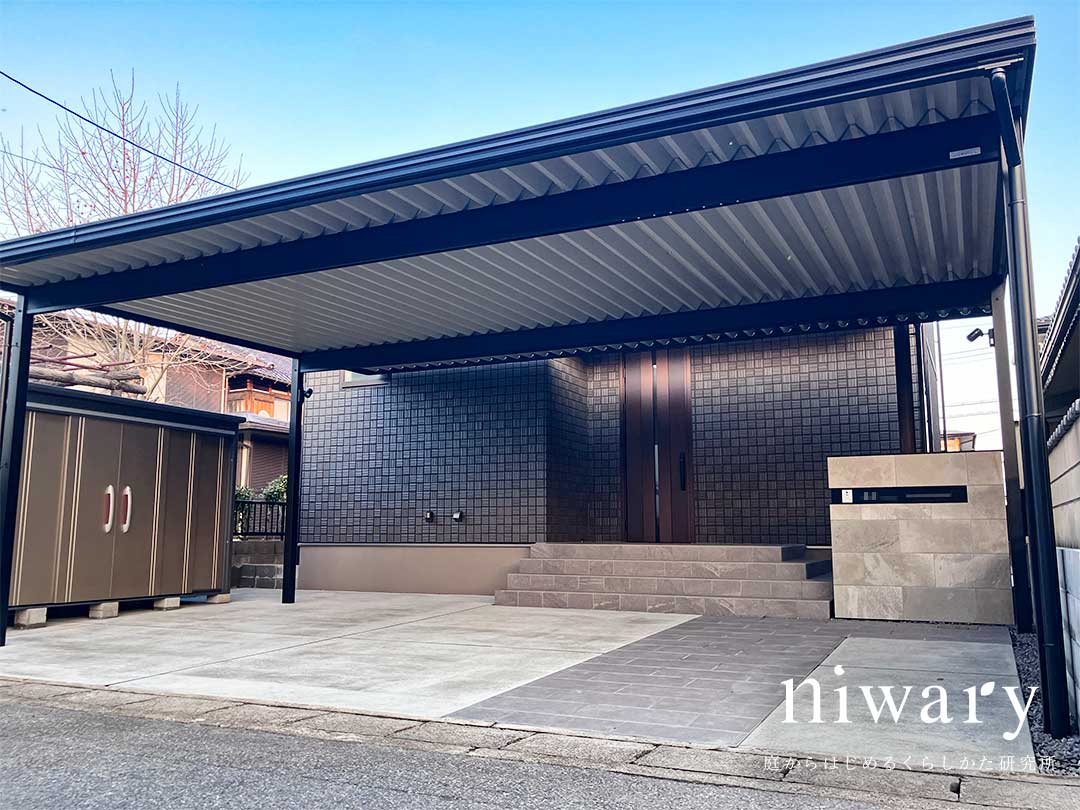 カースペースには、耐久性に優れた折板屋根のカーポートを採用。