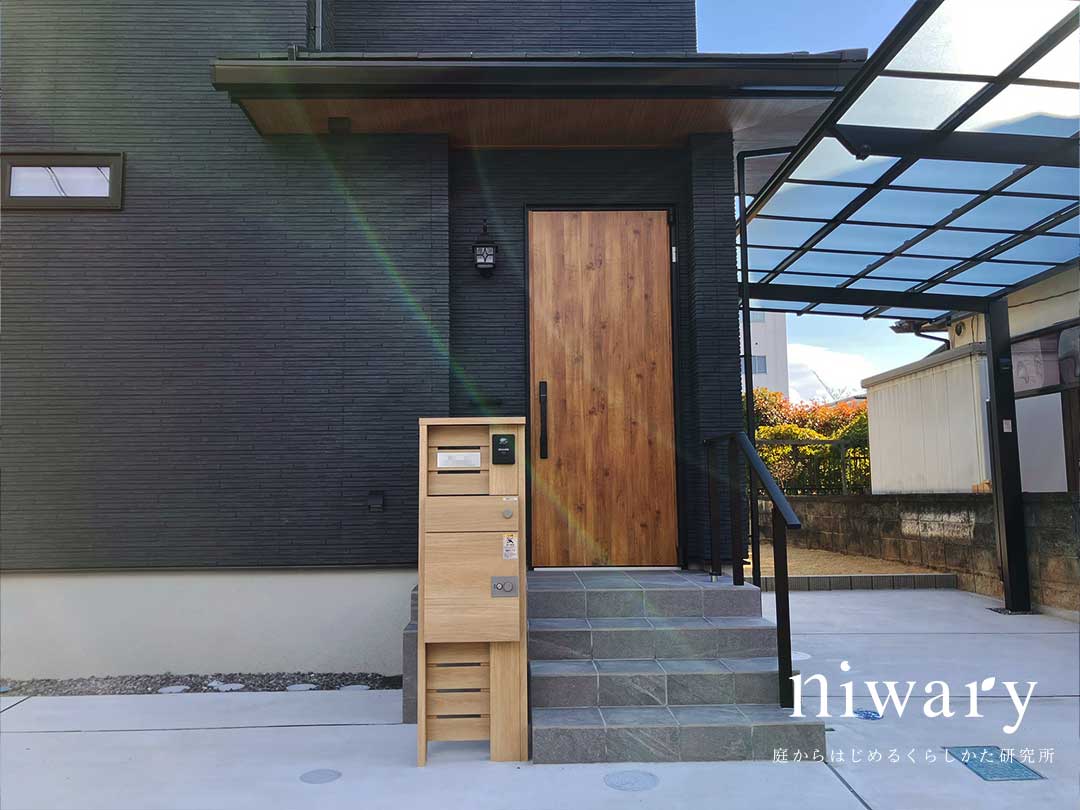 正面から見たときの“視線の止まりどころ”ができ、シンプルでも印象に残る玄関まわりになりました。