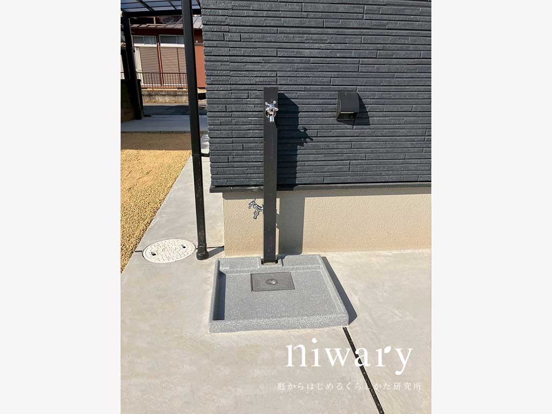 外水栓(立水栓+パン)も設けているので、洗車や掃除、庭まわりの水やりにも便利です。