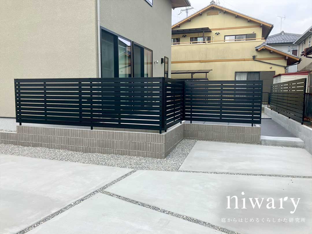お庭部分は、防草シートまでを施工し、使い方の自由度を残した計画としました。