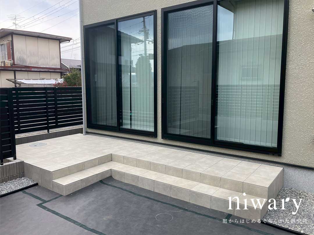 タイルデッキは室内とのつながりを意識した高さ設定とし、外へ自然に広がる居場所に。