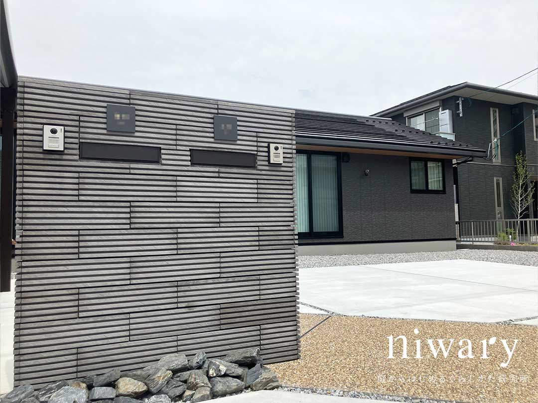 平屋の魅力を引き立てながら、2世帯住宅としての使いやすさにも配慮することで、日々の暮らしに自然と馴染む外まわりに仕上がっています。