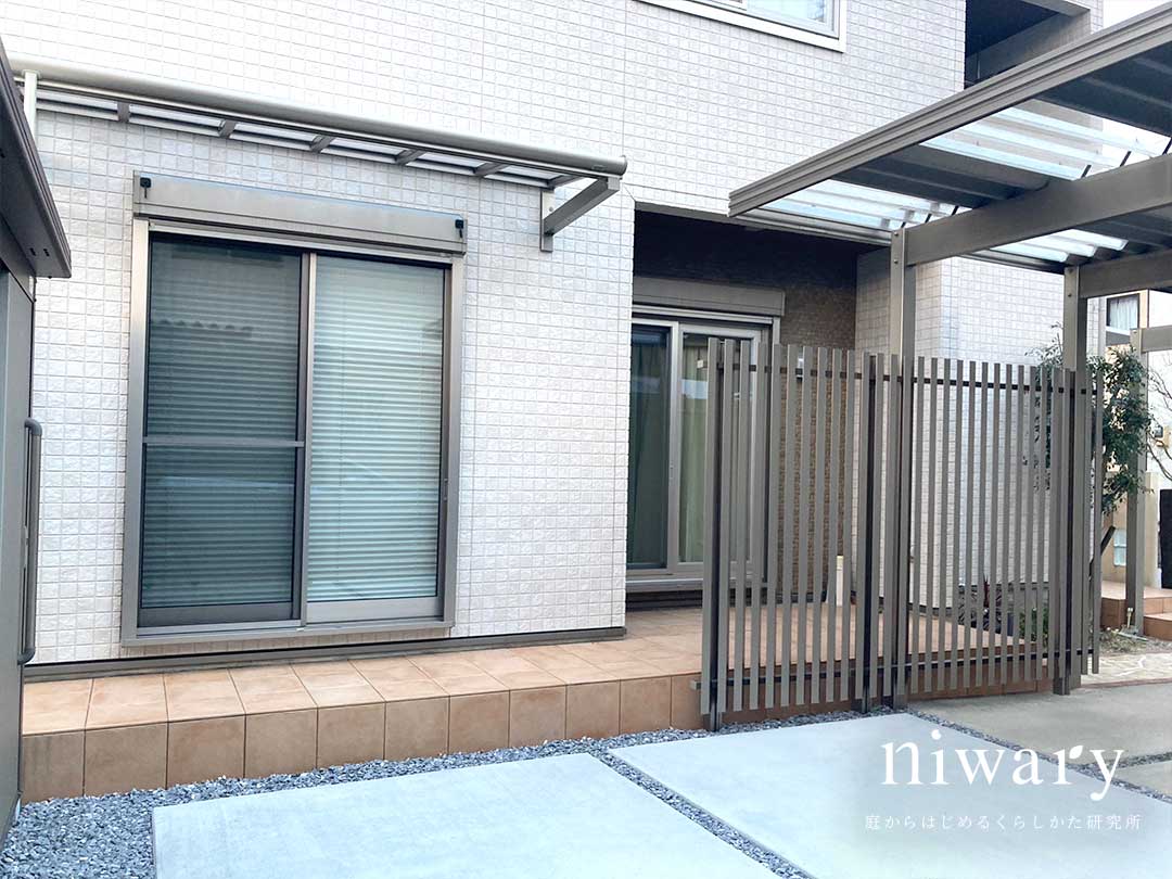 また、鳥のフンもよく落ちてきて、せっかくのタイルデッキに出られないと言われていたので、テラス屋根も設置。