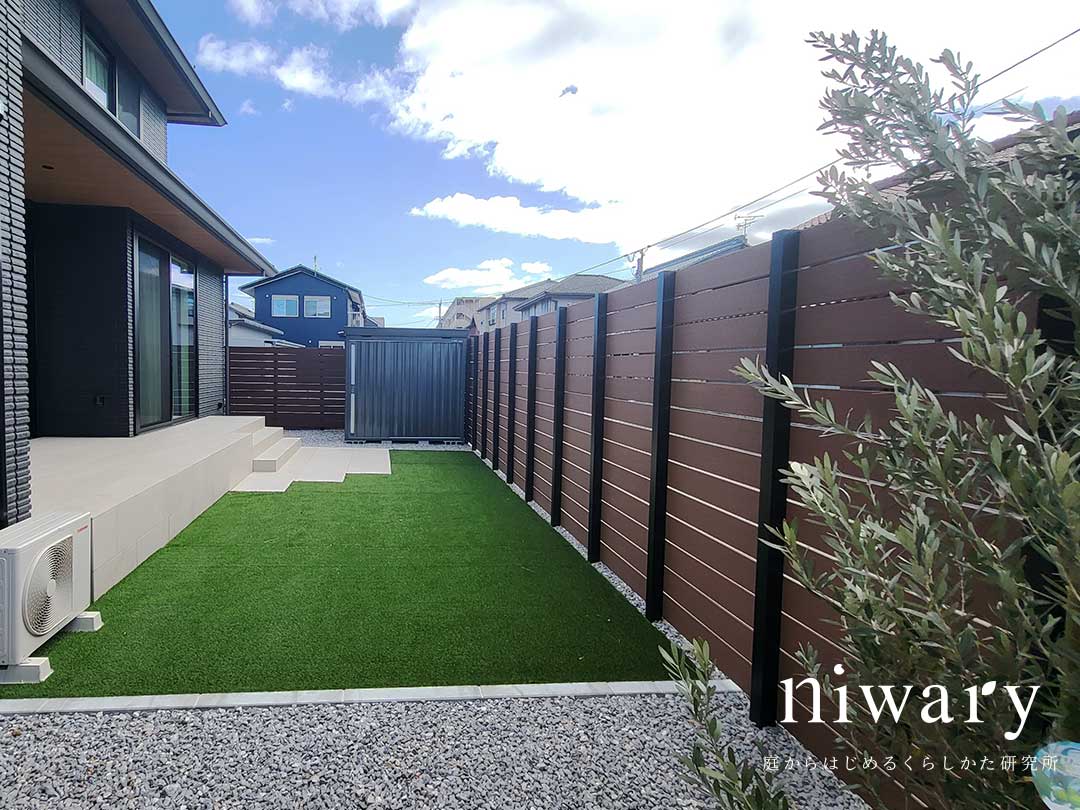 周囲には木調フェンスを設置し、外からの視線をやわらかく遮りながらプライバシーを確保。