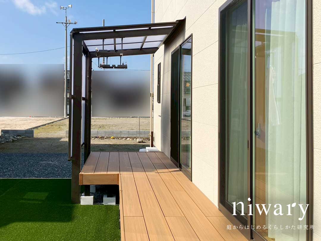 お庭時間を広げるデッキと人工芝